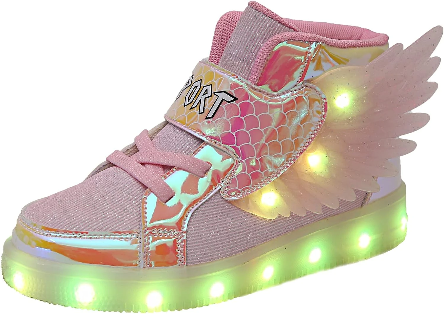 - Conception unique: la conception de la lumière clignotante des ailes est très accrocheuse, et la conception de la lumière clignotante assortie avec la semelle de la chaussure est plus à la mode et cool. Le velcro pratique et la conception haut de gamme, s’adaptent à toutes sortes de pieds, sont faciles à mettre et à enlever, confortables et ne pas broyer vos pieds. Un routage exquis renforce le corps de la chaussure, qui est à la mode et élégant.