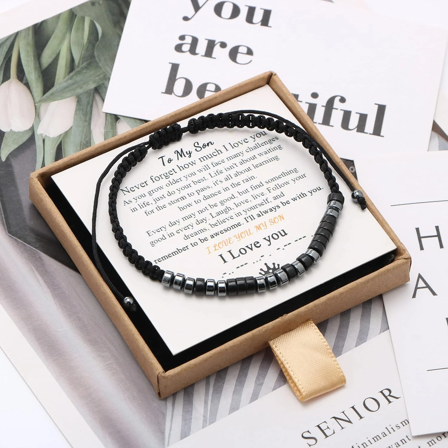 - Bracelet To My Son de Mom: Les bracelets Morse portent un message de soutien et d’encouragement – le message est clair pour ceux qui peuvent le lire, et tout simplement un groupe assez brillant pour ceux qui ne peuvent pas!