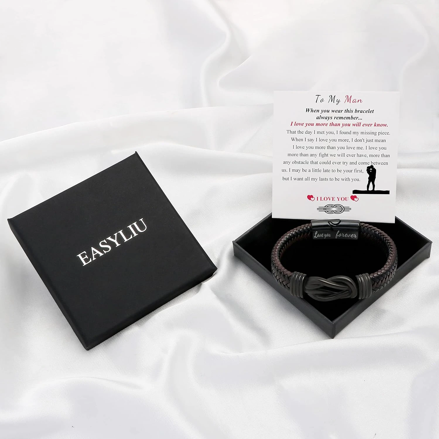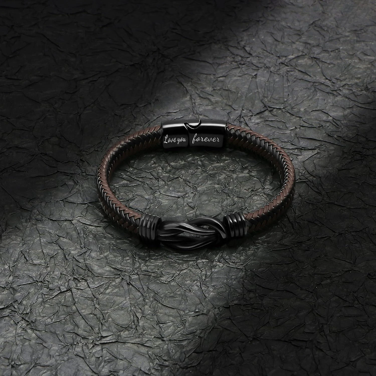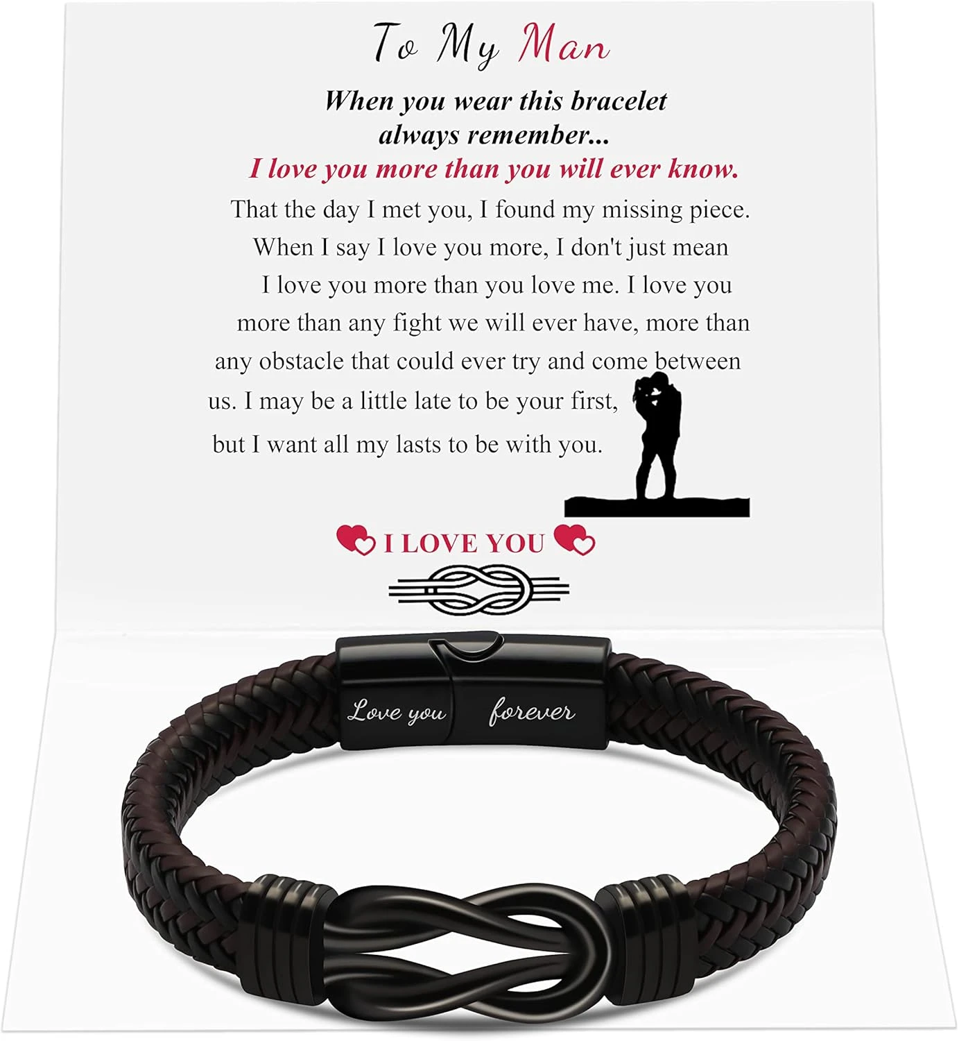 - Cadeaux d’anniversaire Homme: Bracelets en cuir tressés faits à la main. Lien spécial ensemble des cadeaux d’amour, venez avec une belle carte de souhaits, qui peut également laisser vos messages personnalisés. Quand il portera ce bracelet, il aura un rappel que le souvenir créé entre vous sera chéri pour toujours. Cadeaux personnalisés significatifs Pour lui, aimez-vous pour toujours.