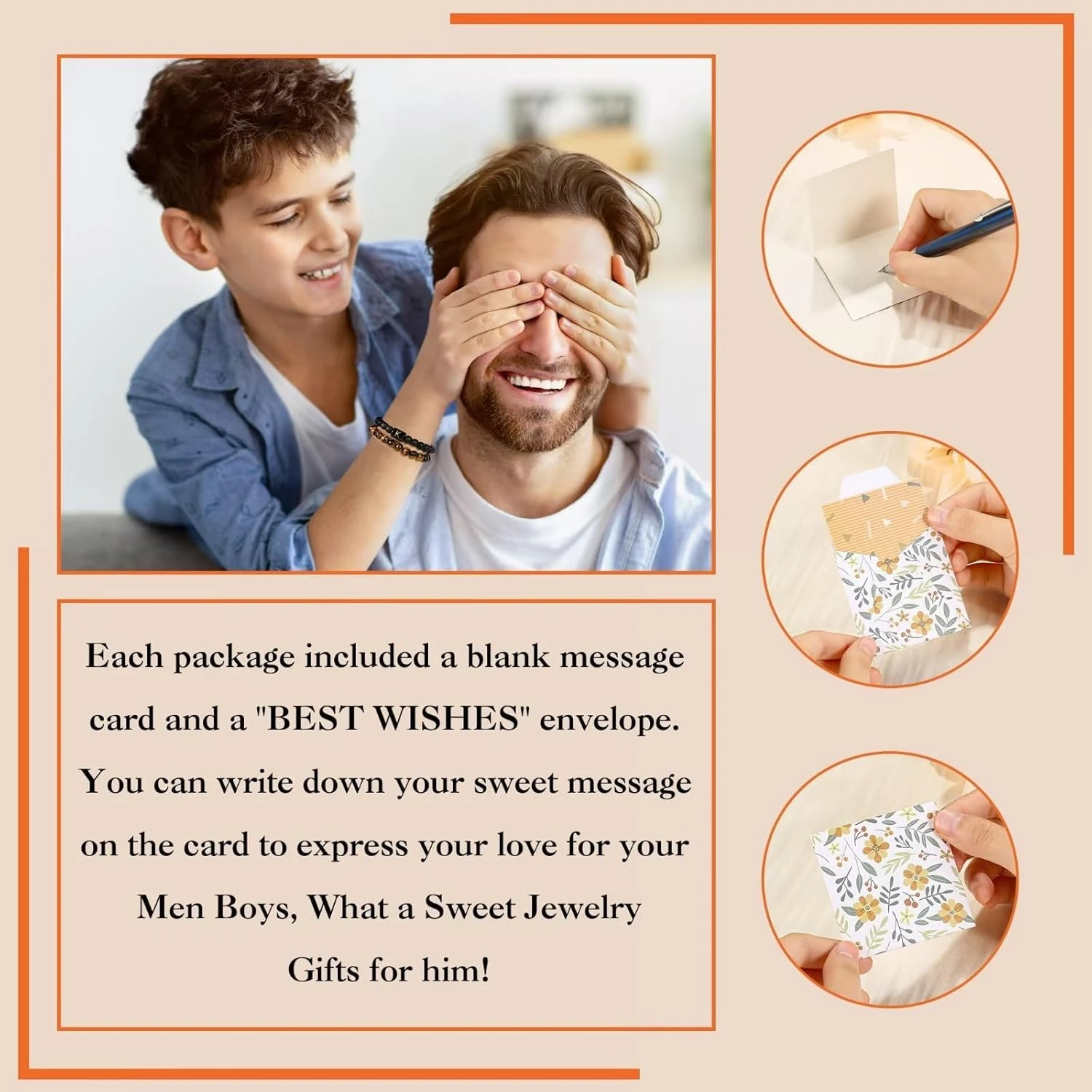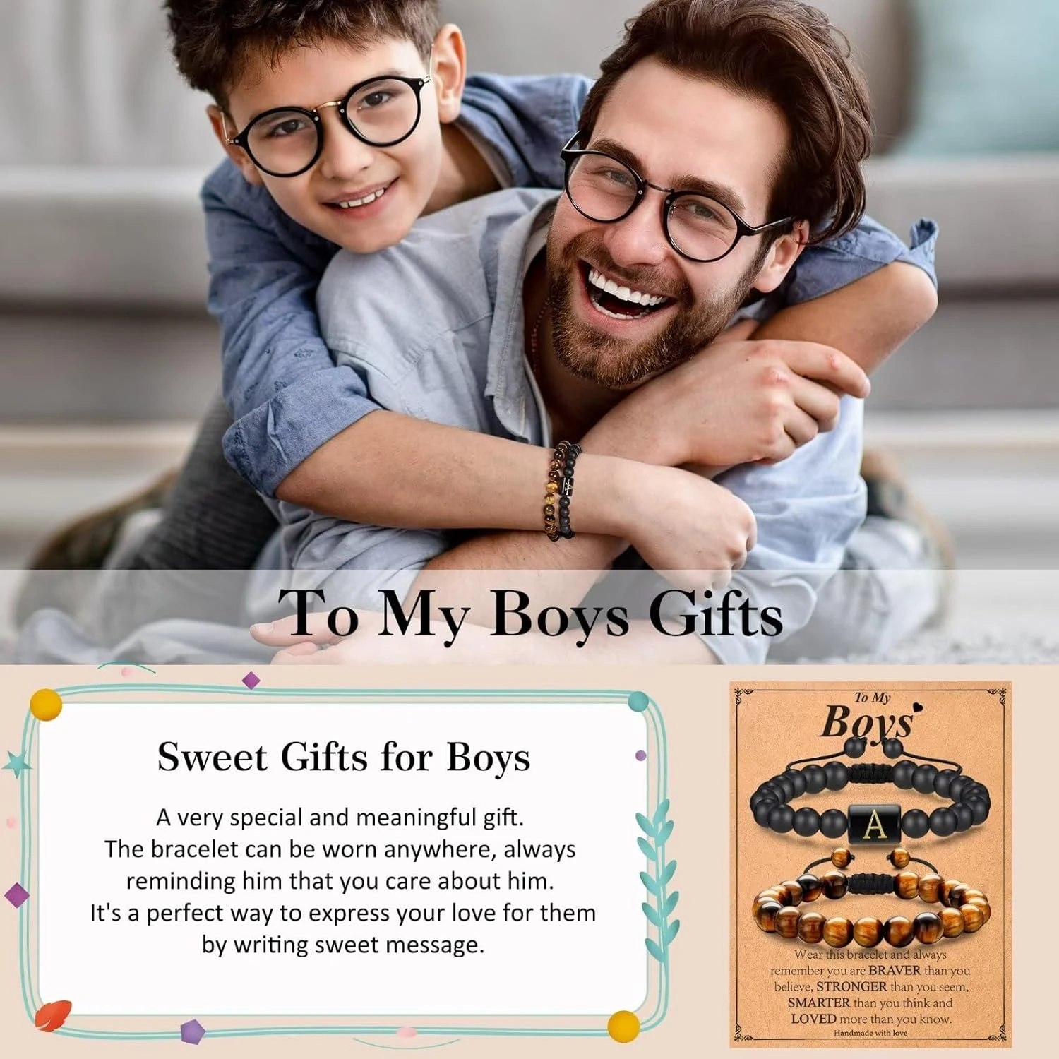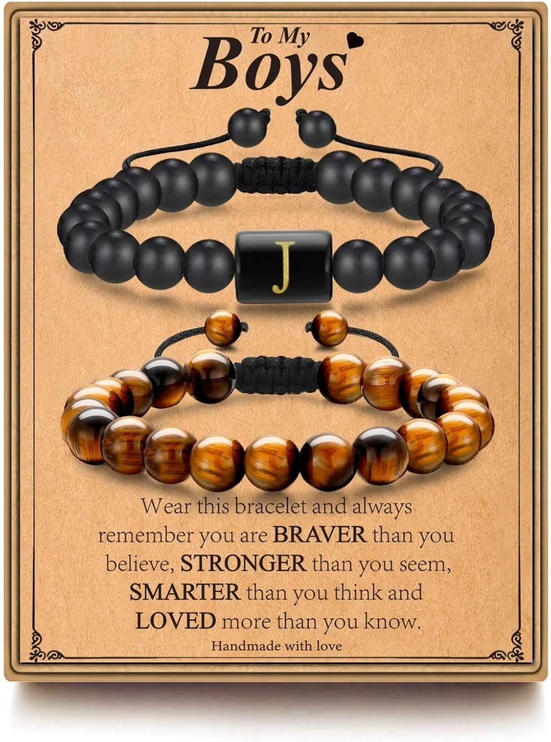 - ❤【UNIQUE GIFTS】: Come with an inspirational message card and a blank writing card in an Exquisite Kraft Paper Box. Initial Bead Bracelet is a perfect gifts for your boys on Fathers day, Anniversary, Christmas day, Valentines day, Birthday.