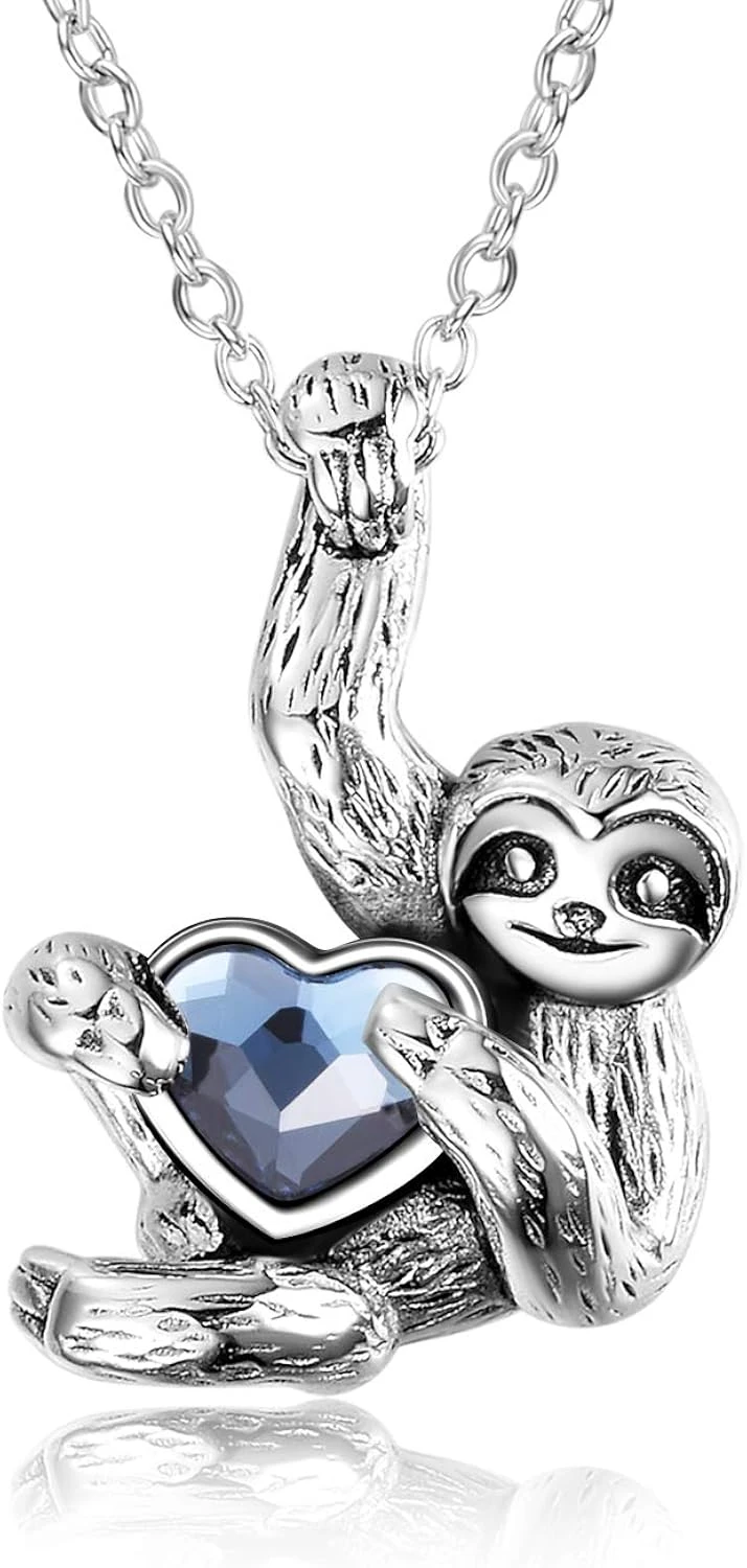 - 💖 Design: Collier coeur paresseux, un joli collier animal de la collection paresseux.Fabriqué avec un processus d’oxydation en argent sterling 925 plus, incrusté de cristal coeur bleu, classique, mignon et mode.Il convient le plus souvent.