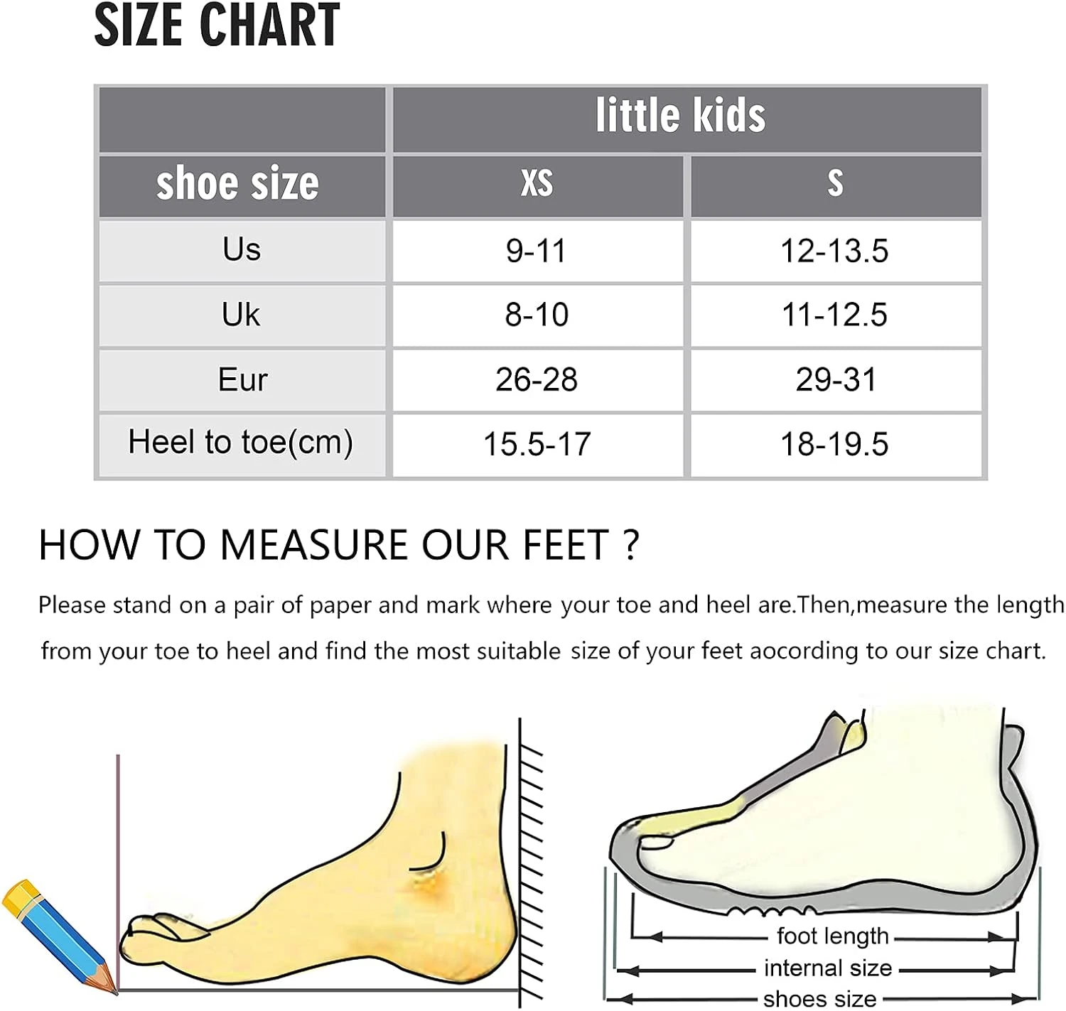| Taille | 9 -11 Tout-petit, 2-13,5 Petit Enfant |