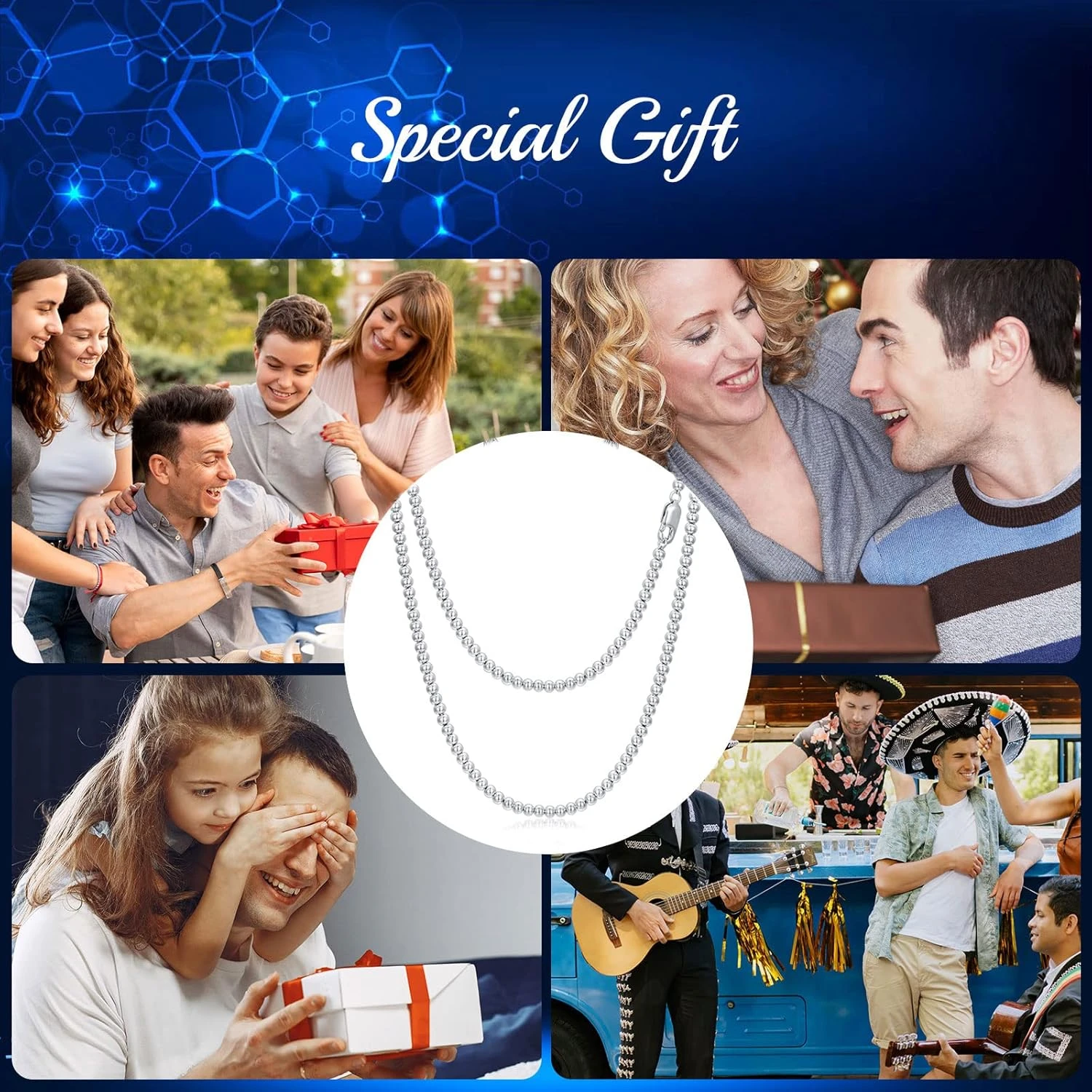 - ❤【 BEST GIFT FOR MEN AND WOMEN 】 La délicate chaîne de perles en argent sterling contient une boîte magnifiquement marquée, une carte d’information de marque, un chiffon de nettoyage de bijoux et est parfaite pour toute occasion de cadeau. Ce sera un cadeau parfait pour la Fête des Mères, la Fête des Pères, l’anniversaire, la saint-valentin, Noël, nouvel an, fiançailles, mariage, anniversaire, etc.