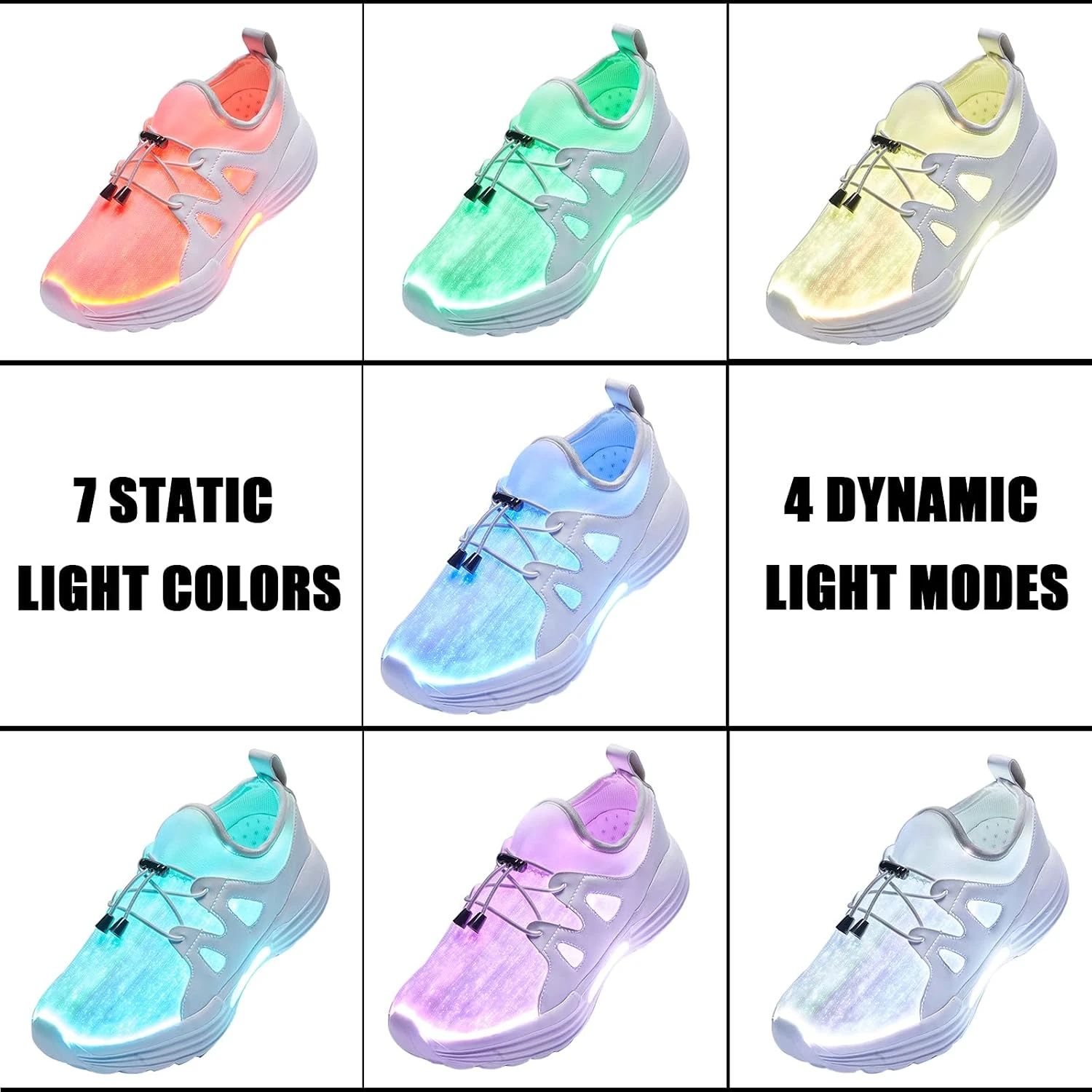 - Les chaussures LED Fibre Optic ont 7 modèles de couleurs simples et 4 modèles clignotants, et les chaussures peuvent être chargées par USB.