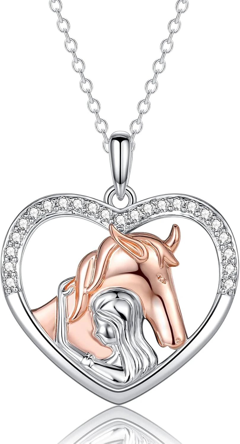 - 💖Horse Collier Matériel – Cette fille en argent étreignant cheval pendentif collier est fait de S925 Sterling chaîne en argent, hypoallergénique pour les peaux sensibles | Plaqué avec 14K Or Blanc, qui gardera brillant pour un usage quotidien | Super Lightweight et sans Nickle. Confortable pour un usage quotidien!