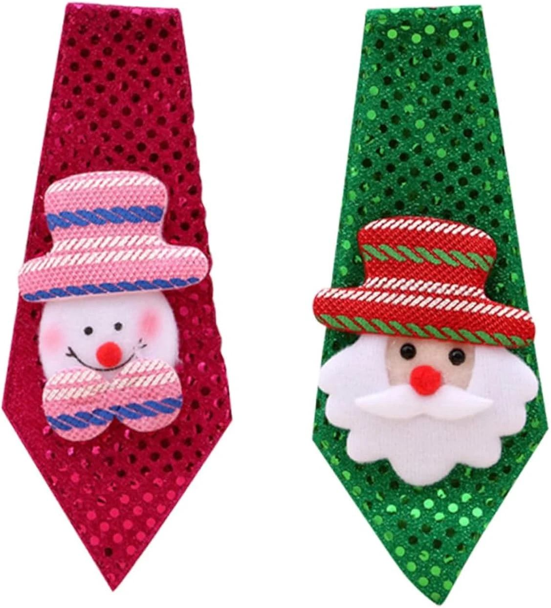 - Cravates de fête de Noël: tissu à paillettes, soyeux et confortable. lavable et réutilisable.