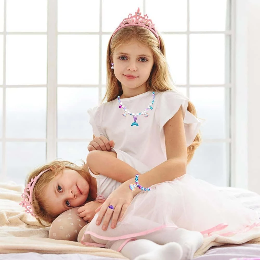- 【Perfect Gift】Le bel ensemble de sirène est parfait pour les fêtes d’anniversaire, les fêtes à thème de princesse, les jeux de costumes de princesse, Noël, Halloween, la photographie, et plus encore. C’est un excellent cadeau pour votre chère fille, petite-fille et nièce. Aucune petite fille ne peut refuser l’ensemble de bijoux de sirène étincelante.