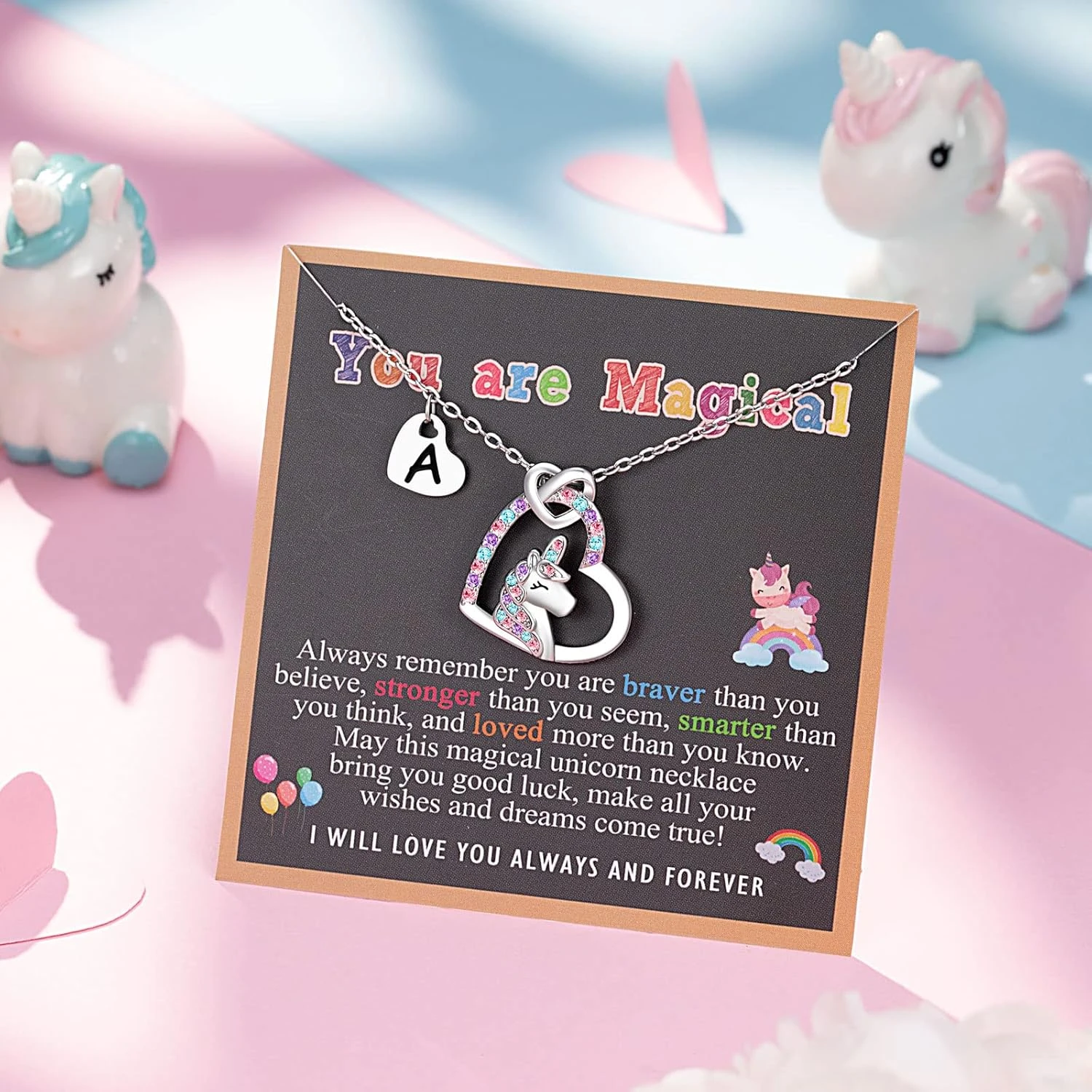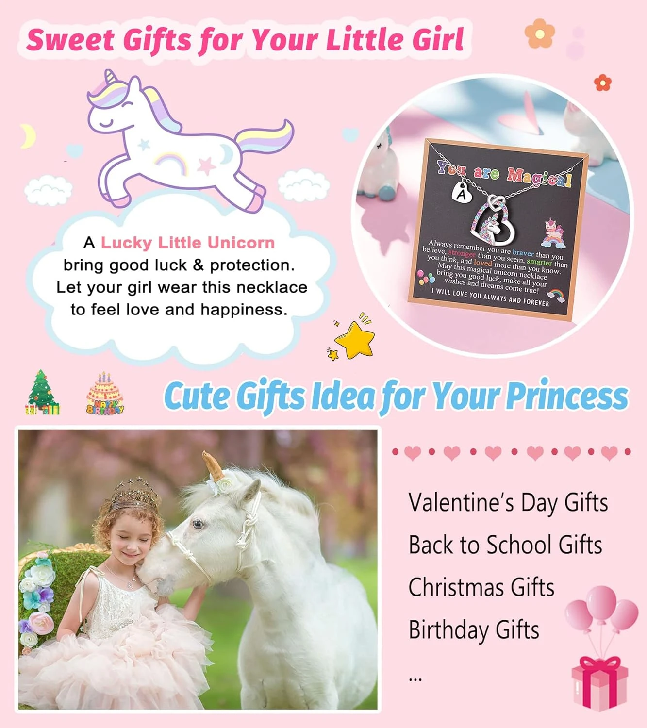 - 【Unicorn Initial Necklace】 — licorne magique se combinent avec la conception initiale, chaque lettre peut représenter différents noms ou mots spéciaux signifiant, représente l’amour, les souvenirs et les rêves dans nos cœurs. Laissez votre fille porter ce collier de licorne pour lui rappeler d’être mignon, courageux, heureux, en bonne santé, beau et pur.