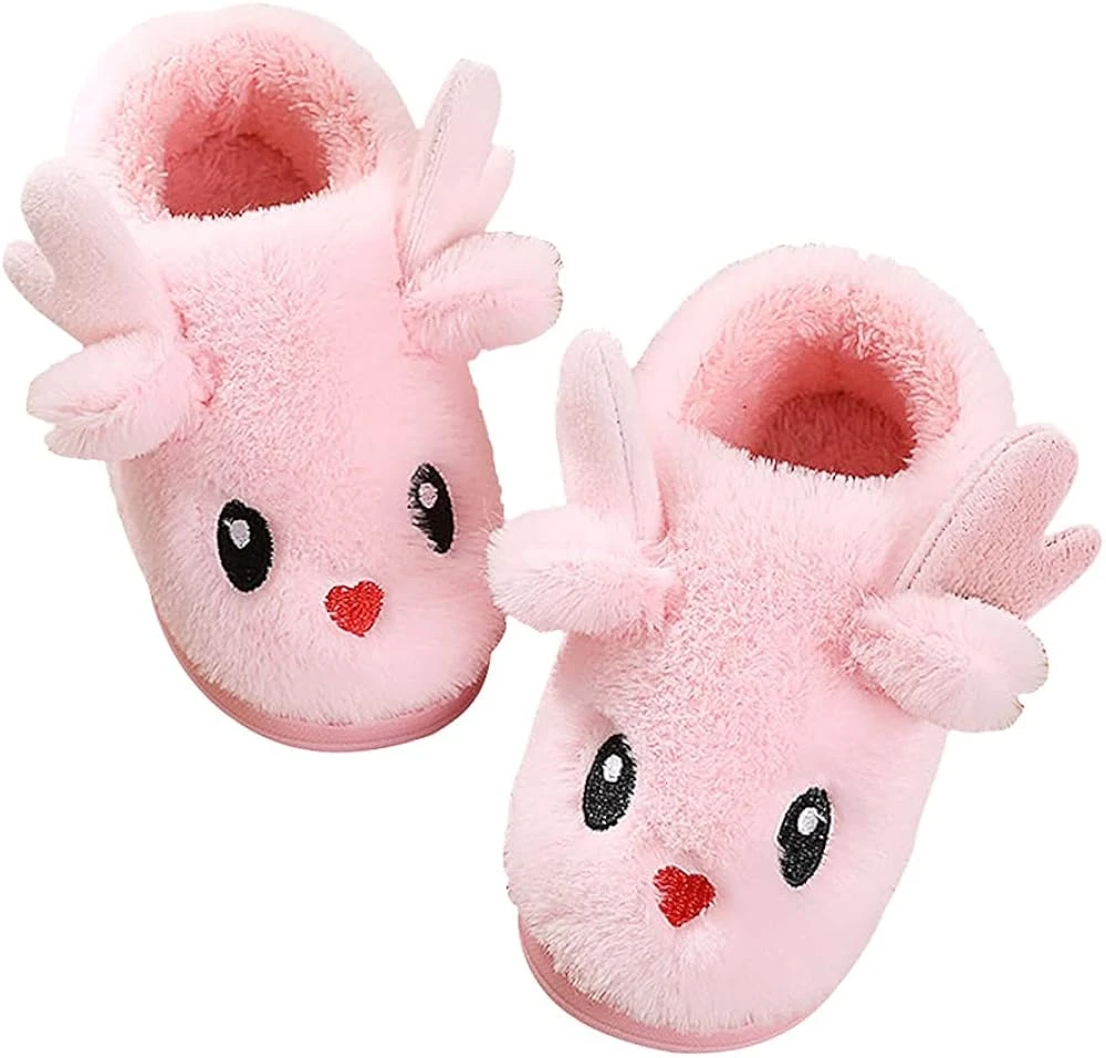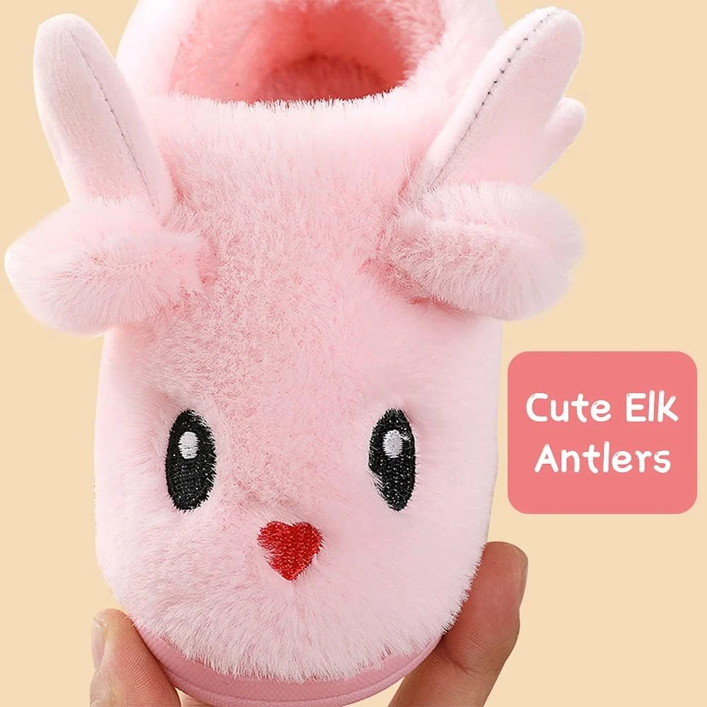 Knemksplanet Garçons Filles Chaussures De Noël Enfants Hiver Cartoon Elk Bunny Chaussons Chaud Fuzzy House Chaussons Non-Slip Intérieur Extérieur