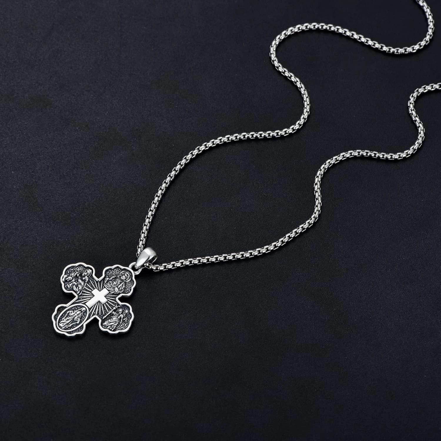 - Matériel de haute qualité:Ce collier de croix catholique est fait d’argent sterling pur, et la chaîne de collier est faite d’acier inoxydable durable, ne ternira pas ou ne rouille pas facilement,et adapté pour le long terme à porter;