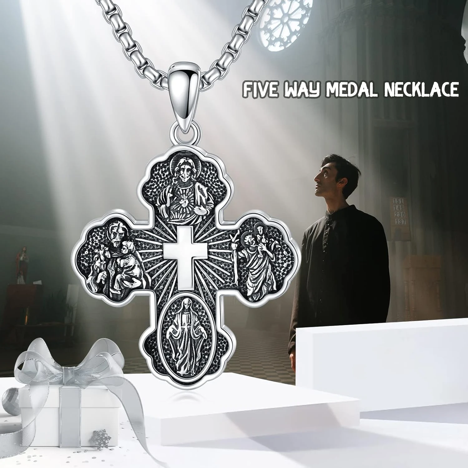 - Collier Croix à 4 voies: le collier médaille à 4 voies représente le Sacré-Cœur de Jésus, St.Joseph, St. Christophe, et la médaille miraculeuse, prends ce collier de croix et porte-le tous les jours, que Dieu soit toujours avec toi;