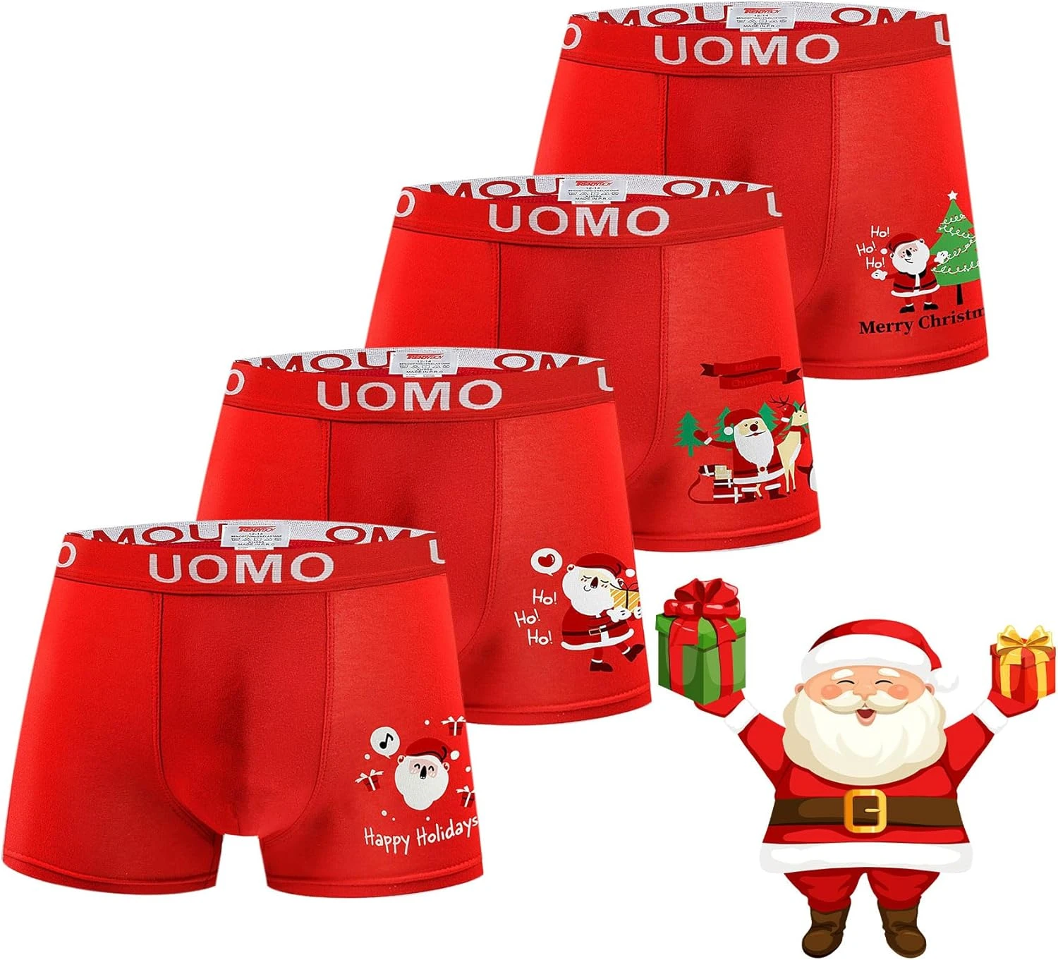POWER UNICO FLOWER Trendy Boy Garçons Noël Coton Boxer Mémoires Sous-vêtements 2-12 Ans 4-Pack Couleur Rouge