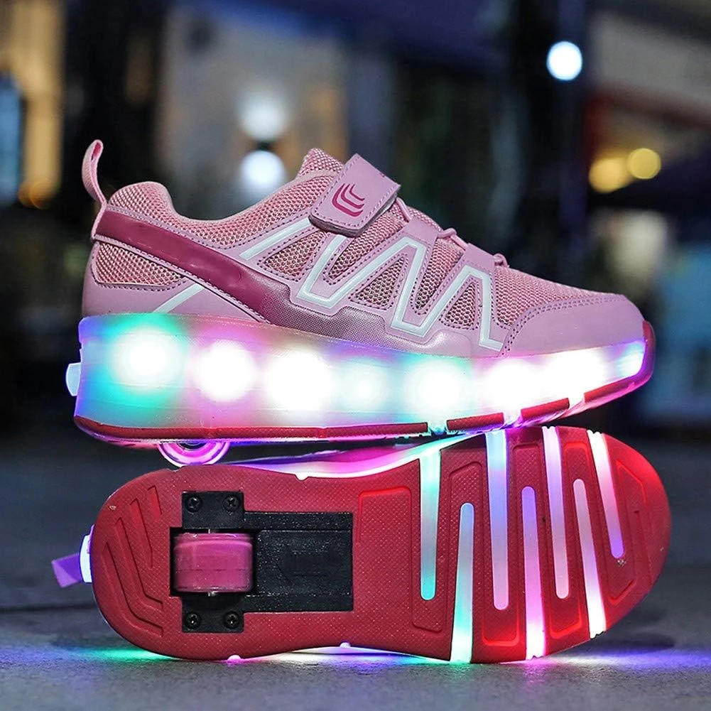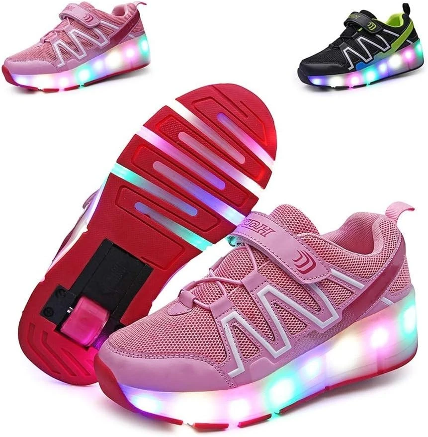 - ★MULTIFUNCTION: Vous pouvez faire apparaître et cacher le rouleau par un bouton au talon. Ainsi, vous pouvez utiliser ces deux chaussures de patins à roulettes et chaussures de sport normales.