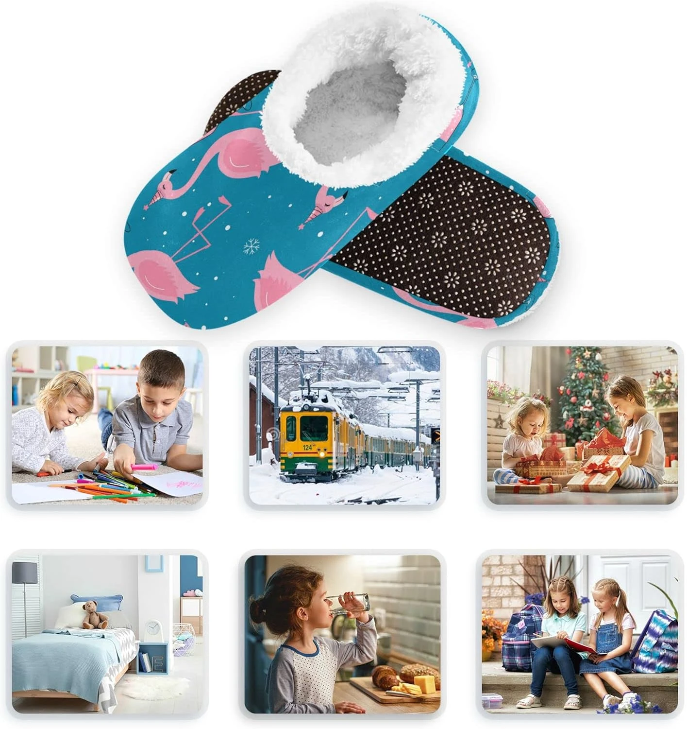 Rose Flamingo Flocons De Neige Enfants Maison Pantoufles Mignon Noël Nouvel An Garçons Fermé Retour Fuzzy Pieds Pantoufles Filles Corail Polaire Pantoufle Chaussettes Aucun Skid Chaud Confortable Maison Pantoufles Pour Intérieur Extérieur Hiver