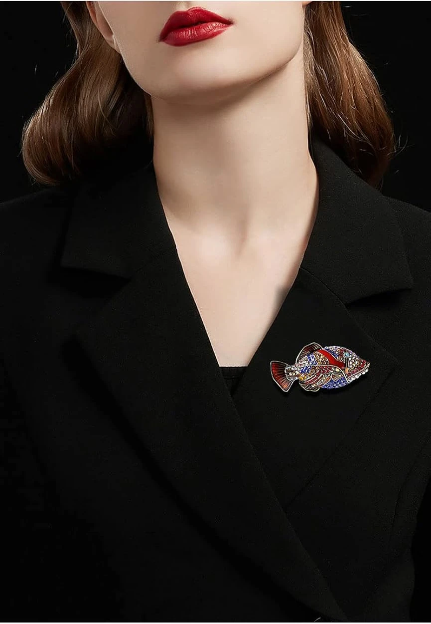 - ♥SIZE & STYLE♥Le Poisson Strass Broche Broche Hauteur de la broche: 35mm(1.37in), Broche Pin Largeur:68mm(2.67in). Veuillez vous référer à l’image du produit.